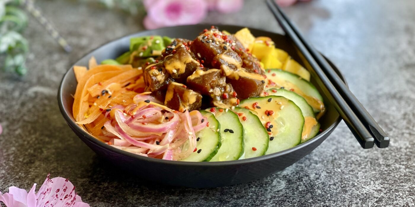 El “poke bowl” es originario de Hawái. Nació como un plato tradicional con pescado crudo cortado (generalmente atún), marinado con salsa de soja, aceite de sésamo y otros condimentos.